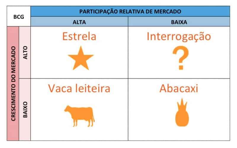 Basicamente, o gestor vai montar uma “tabela” em que classificará seus produtos de acordo com a participação de mercado.
